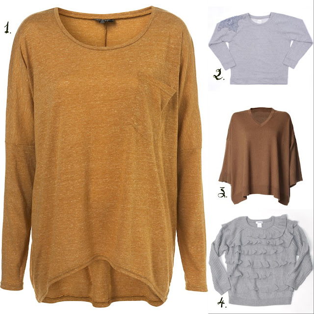 With cooler weather and morning drizzle making its way into the daily forecast, I can't help but long for over-sized, slouchy tops made from soft cotton or warm knits. Lately I've been equating cool mornings with slouchy tops, skinny jeans, and knee-high boots. While I've never been a fan of wearing one's sweatpants out in public (save perhaps a trip to the gym or when camping), these pseudo-lounge items below have definitely caught my attention.